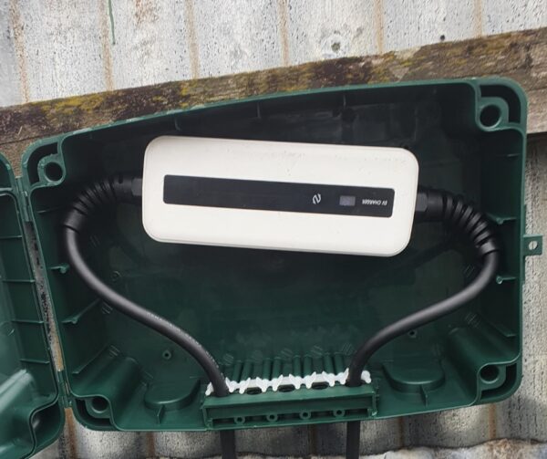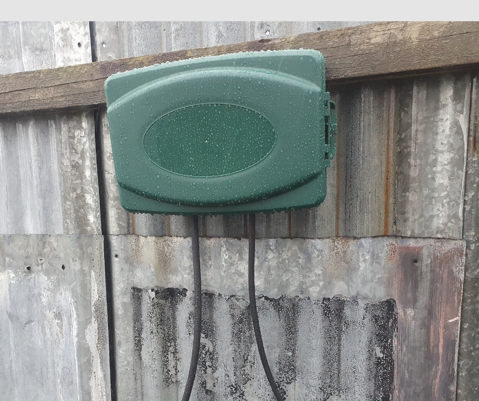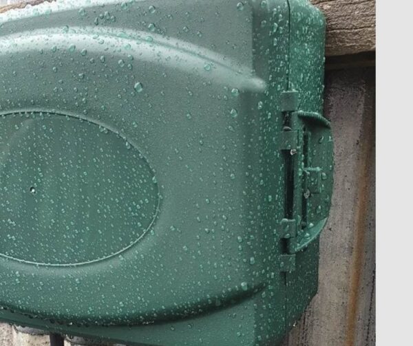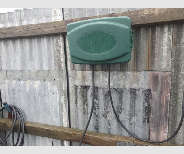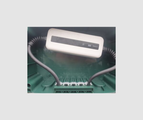 Built tough for NZ conditions, this green weather-resistant box features a hinged lid, rubber-sealed cable exits, and space for airflow—perfect for protecting your charger from wind and rain. Mount it on a wall or use it on the ground for flexible setup.